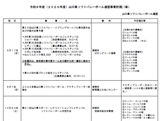 令和8年度(2026年度)山口県ソフトバレーボール連盟事業計画
